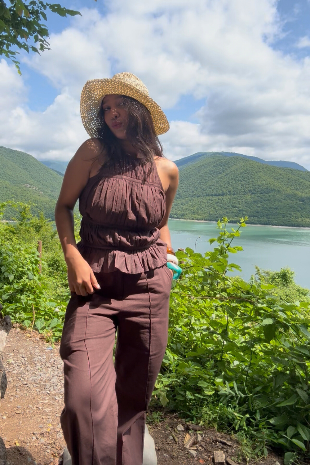 The Cocoa Halter Top brings a soft edge to city dressing. Designed with gentle ruching, a flattering halter neckline, and a back loop closure, it’s relaxed yet refined. A hidden side zip makes it easy to wear, while the breathable hemp-cotton blend keeps you cool and comfortable.