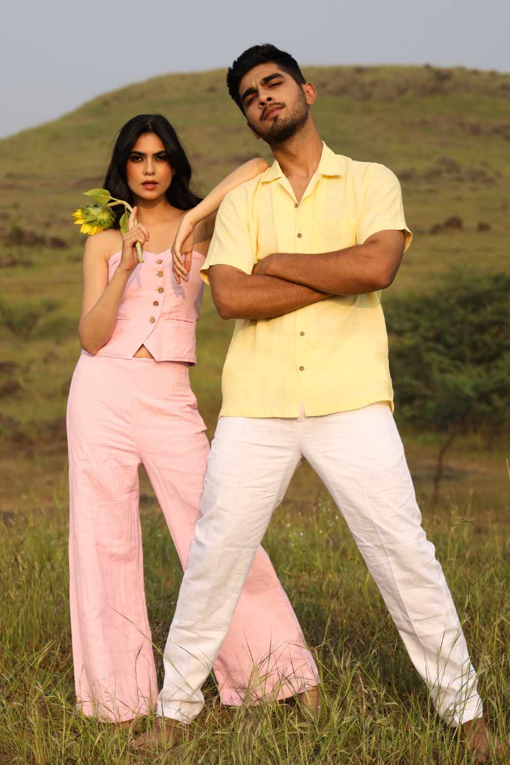 Let your wardrobe glow with the Sunset Yellow Shirt. This sunny yellow piece offers a convertible collar, short sleeves, and a vibrant colour that catches every eye.